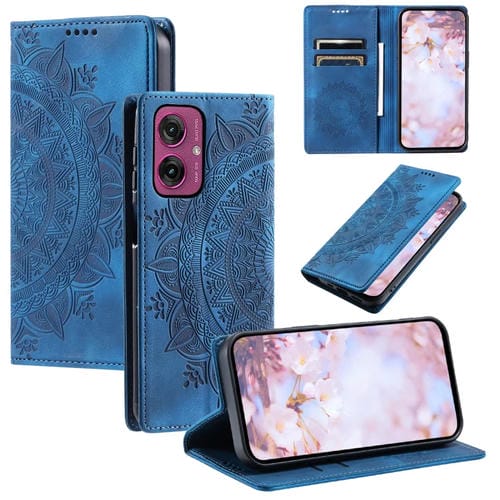 Funda de Cuero Magnética con Relieve Totem para Motorola Moto G55 (Azul)