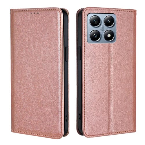 Funda de Cuero Magnética para Teléfono Xiaomi 14T Pro 5G con Acabado Brillante y Color Sólido (Oro Rosa)