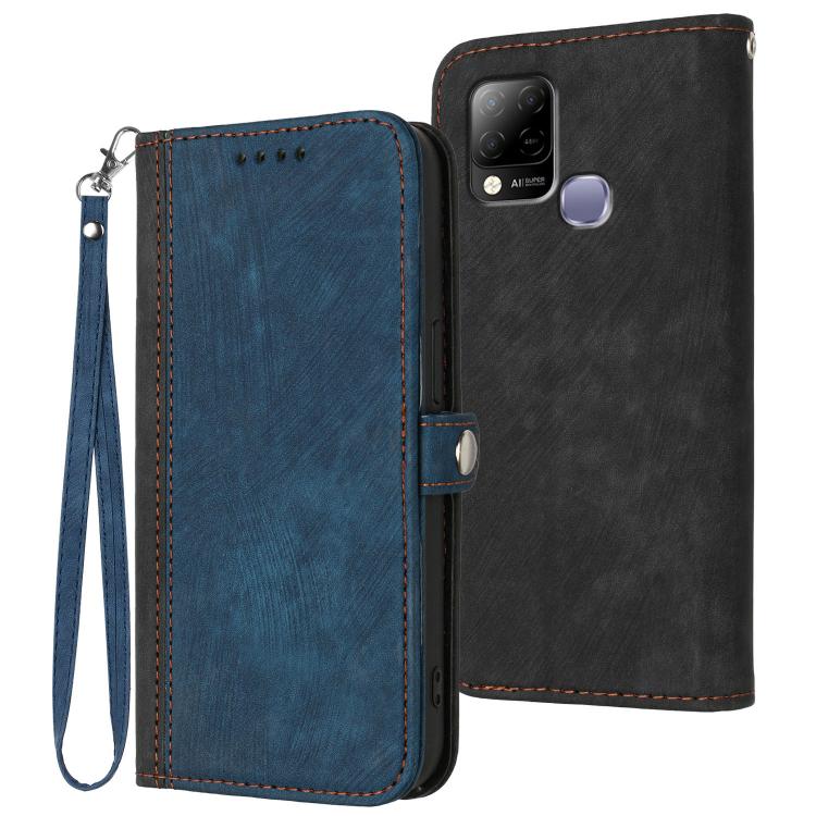 Funda de Cuero para Infinix Hot 10T y Hot 10S con Correa y Hebilla Doble Plegable (Azul Real)