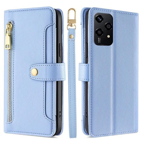 Funda de Cuero para Honor 200 Lite 5G con Cremallera y Diseño de Ovejas en Cruz (Azul)