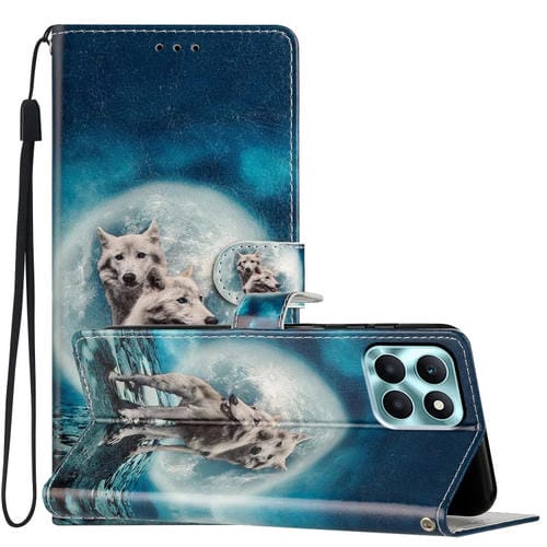Étui de téléphone en cuir à dessin coloré pour Honor X6A (Twin Wolves)