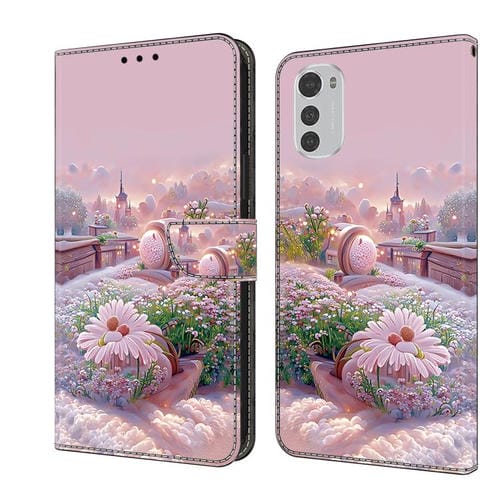 Funda de Cuero Pintada a Mano para Motorola Moto E32 (Jardín)