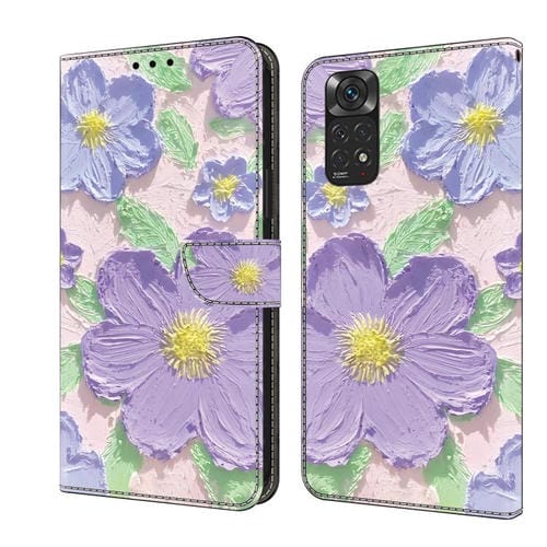 Funda de Cuero Pintada a Mano para Redmi Note 11/11S (Pintura al Óleo con Flores Moradas)