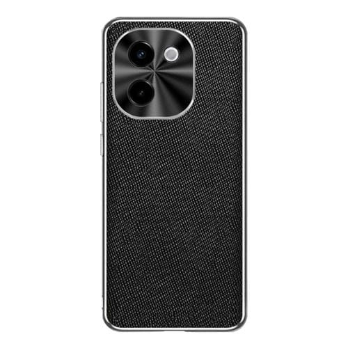 Funda de Cuero Pu con Textura Cruzada y Borde Plateado para Vivo Y200 (Negro)
