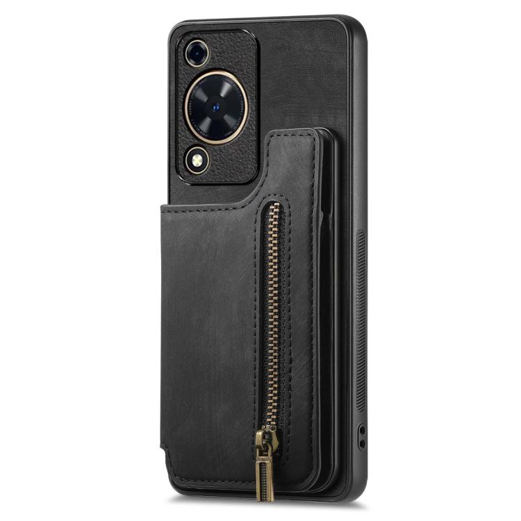Funda Cuero Retro con Cremallera y Billetera para Huawei Enjoy 70 (Negra)
