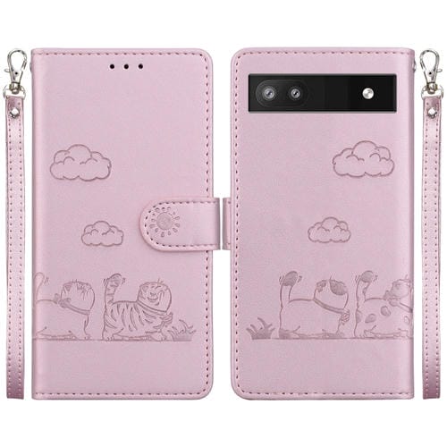 Funda de Cuero Rfid para Google Pixel 6A con Diseño de Gatos (Oro Rosa)