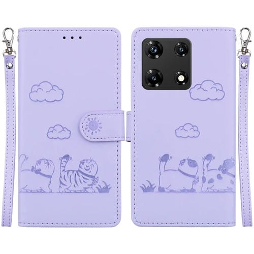 Funda de Cuero Rfid para Infinix Note 30 Pro con Diseño de Gatos (Morado)