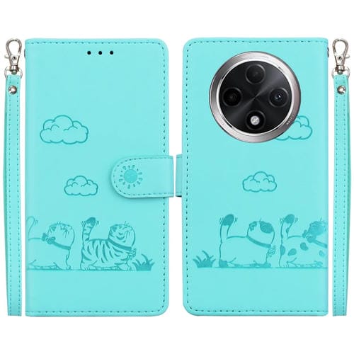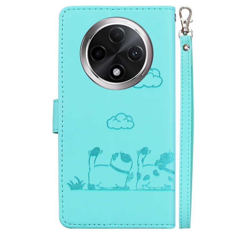 Funda de Cuero Rfid con Diseño de Gatos para Oppo A3 Pro 5G Global (Verde)