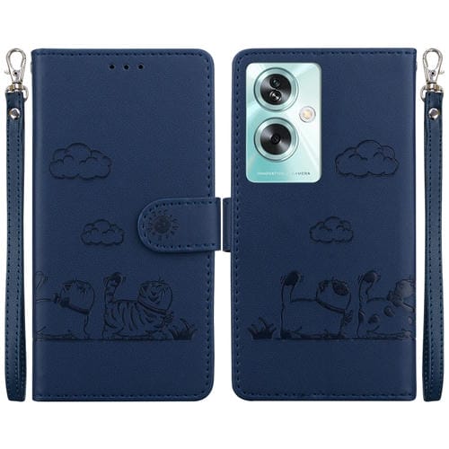 Funda de Cuero Rfid con Diseño de Gatos para Oppo A79 5G Global (Azul)