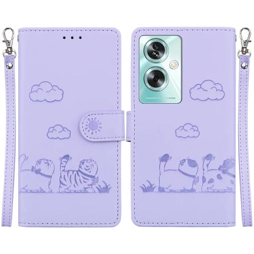 Funda de Cuero Rfid con Diseño de Gatos para Oppo A79 5G Global (Morado)