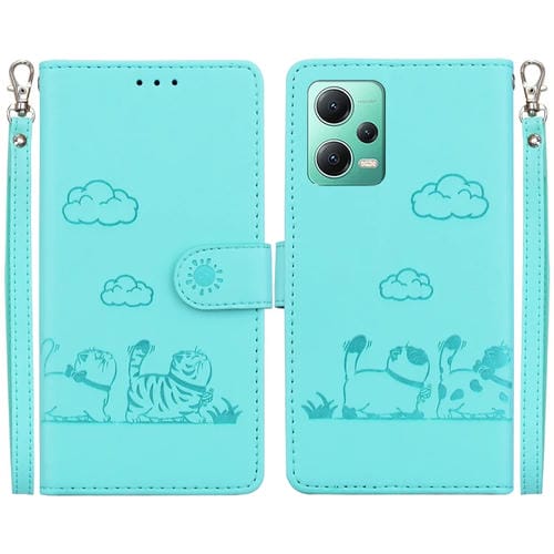 Funda de Cuero Rfid con Diseño de Gatos Lindos para Redmi Note 12 5G (Verde)