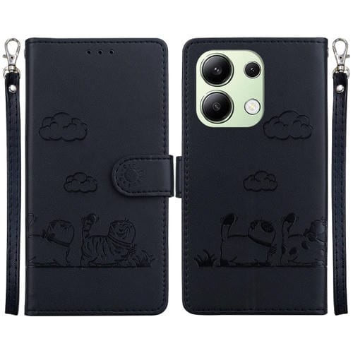 Funda de Cuero Rfid con Diseño de Gatos Lindos para Redmi Note 13 4G (Negro)