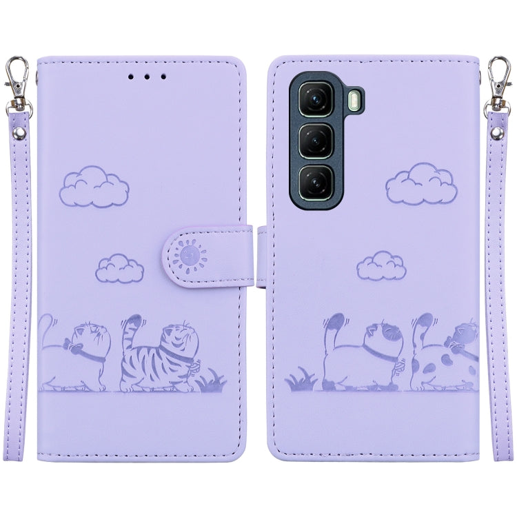 Funda de Cuero Rfid para Infinix Hot 50 5G con Diseño de Gatos (Morado)