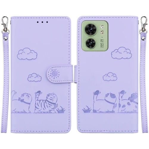 Funda de Cuero Rfid para Motorola Edge 40 con Diseño de Gatos (Morado)