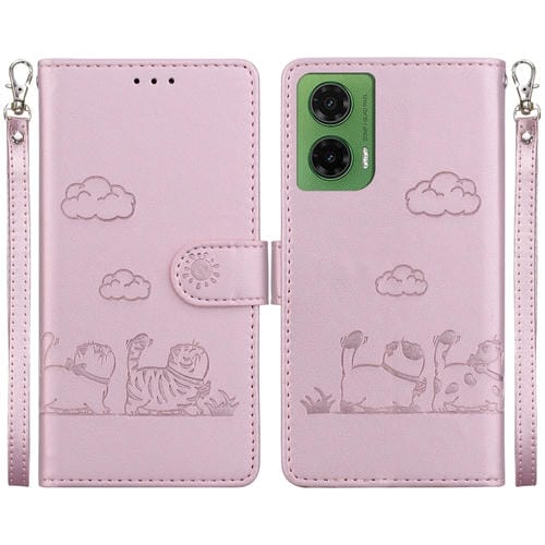 Funda de Cuero Rfid para Motorola Moto G35 con Diseño de Gatos (Oro Rosa)