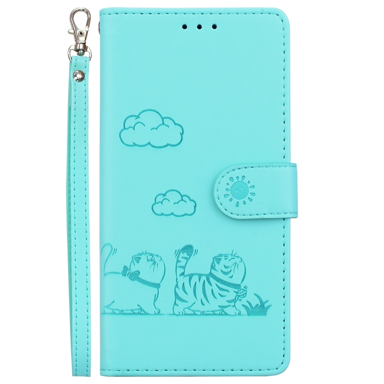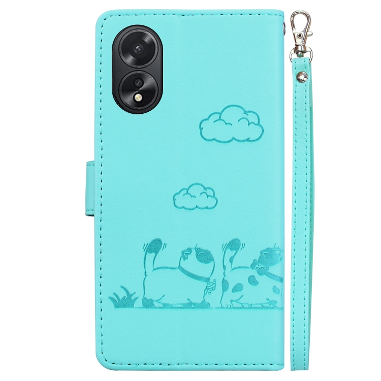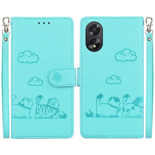 Funda de Cuero Rfid con Diseño de Gatos para Oppo A38 4G/A18 (Verde)