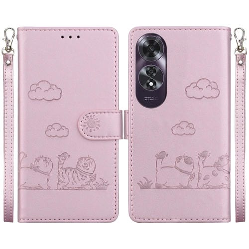 Funda de Cuero Rfid con Diseño de Gatos para Oppo A60 4G (Oro Rosa)