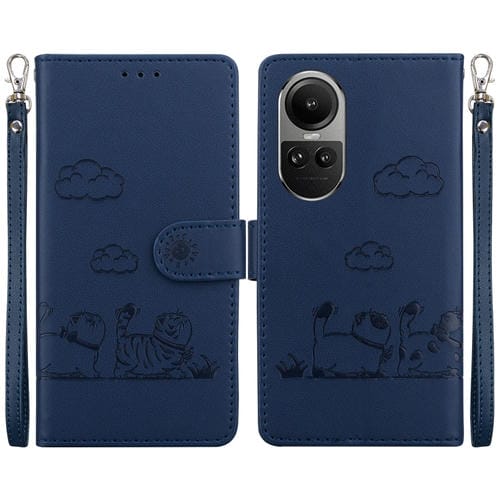 Funda de Cuero Rfid con Diseño de Gatos para Oppo Reno10 5G (Azul)