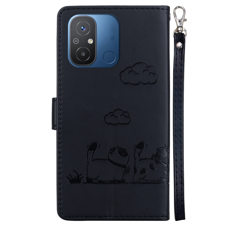 Funda de Cuero Rfid con Diseño de Gatos para Redmi 12C/11A (Negra)