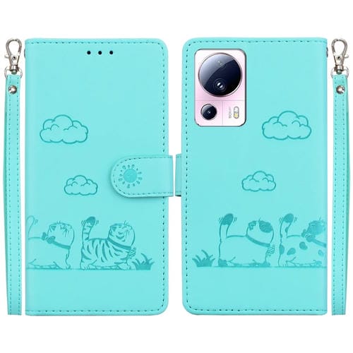 Funda de Cuero Rfid con Diseño de Gatos para Xiaomi 13 Lite/Civi 2 (Verde)