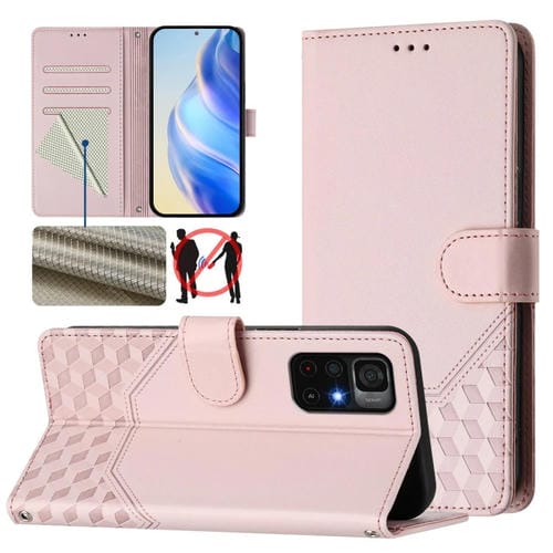 Funda de Cuero Rfid con Relieve de Panal para Redmi Note 11S 5G (Rosa)