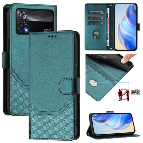 Funda de Cuero Rfid con Relieve de Panal para Xiaomi Poco X4 Pro 5G (Verde Pavo Real)