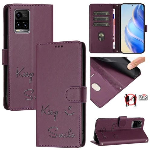 Funda de Cuero Rfid con Relieve de Sonrisa Global para Vivo Y33S 4G (Violeta)