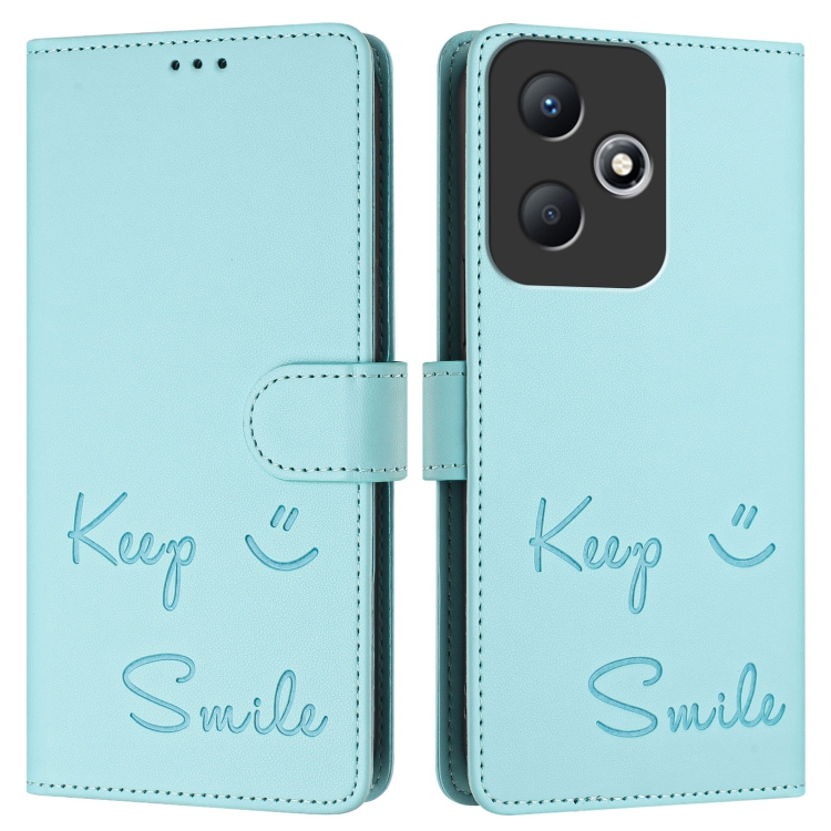 Funda Cuero Rfid con Relieve Sonrisa Nfc para Infinix Hot 30 Play (Verde Menta)
