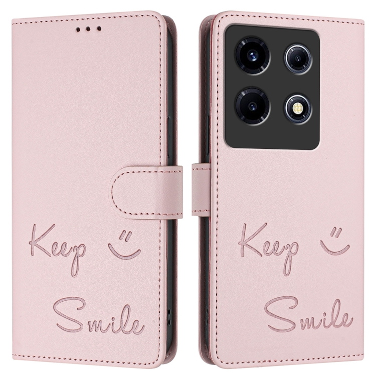 Funda de Cuero Rfid con Relieve de Sonrisa Vip para Infinix Note 30 (Rosa)