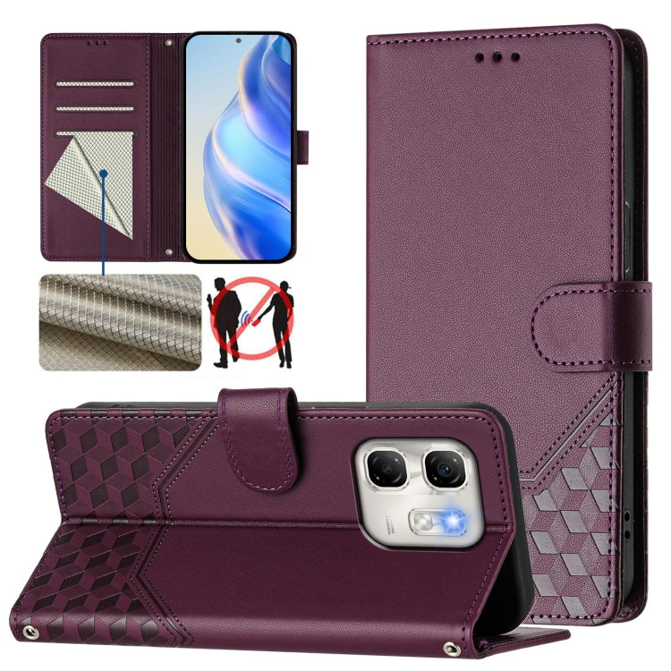 Funda de Cuero Rfid con Relieve en Panal para Infinix Hot 50I 5G y Smart 9 4G (Violeta)