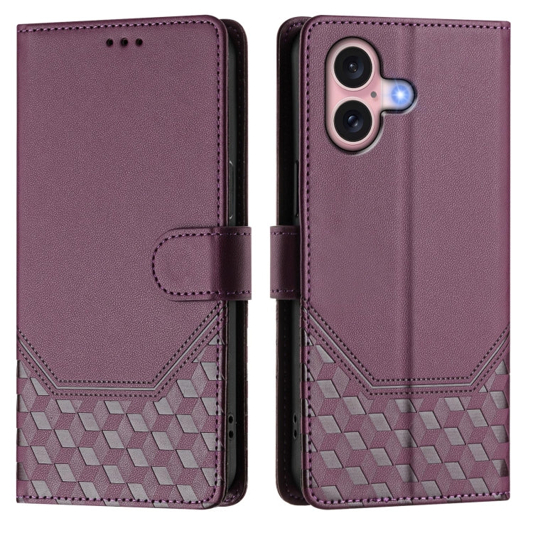 Funda de Cuero Rfid con Relieve en Panal para iPhone 16 (Violeta)