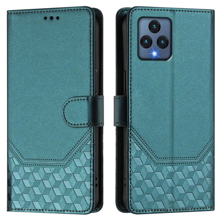 Funda de Cuero Rfid con Relieve en Panal para T-Mobile Revvl 6 5G/6X 5G (Verde Pavo Real)