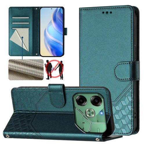Funda de Cuero Rfid con Relieve en Panal para Tecno Pova 6 4G (Verde Pavo Real)