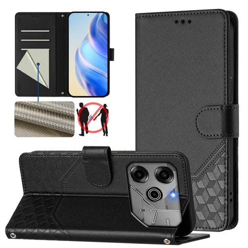 Funda de Cuero Rfid con Relieve en Panal para Tecno Pova 6 5G y 6 Pro 5G (Negra)