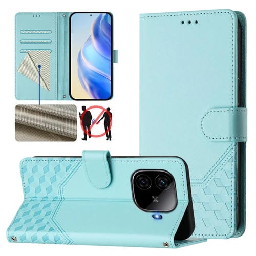 Funda de Cuero Rfid con Relieve En Panal para Vivo Iqoo Z9/Z9 Turbo (Verde Menta)