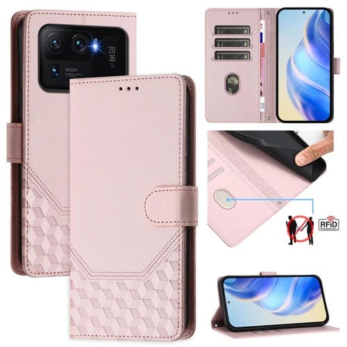 Funda de Cuero Rfid con Relieve En Panal para Xiaomi Mi 11 Ultra (Rosa)