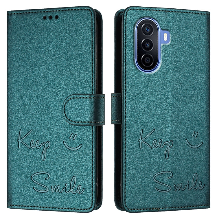 Funda de Cuero Rfid con Relieve Sonriente para Huawei Nova Y70 Plus (Verde Pavo Real)