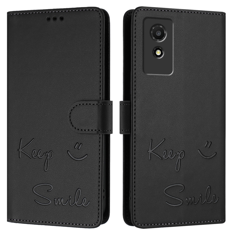 Funda de Cuero Rfid con Relieve Sonriente para TCL 501 (Negra)