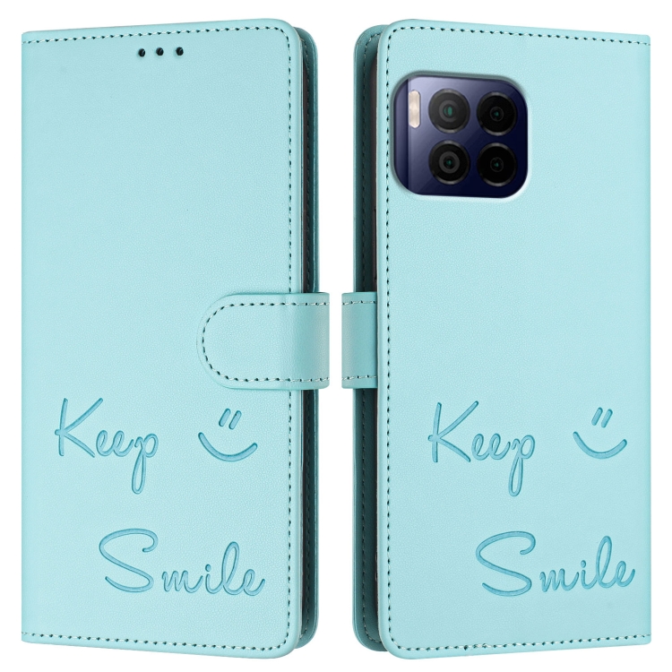 Funda de Cuero Rfid para Teléfono T-Mobile Revvl 7 Pro 5G con Relieve Sonriente (Verde Menta)