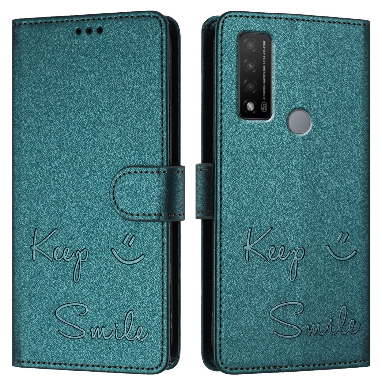 Funda de Cuero Rfid con Relieve Sonriente para TCL 20 R 5G (Verde Pavo Real)