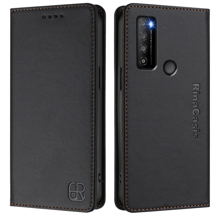 Funda de Cuero Rfid con Succión Magnética y Doble Pliegue para TCL 30 Xl/T701Dl Rc01 (Negra)
