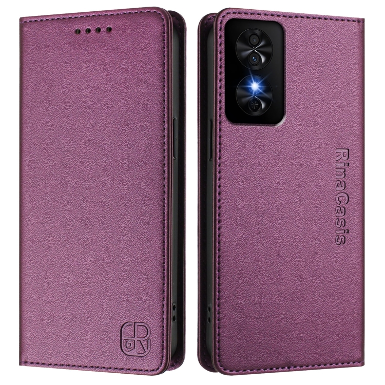 Funda de Cuero Rfid para TCL 50 Se Rc01 con Succión Magnética y Doble Pliegue (Violeta)