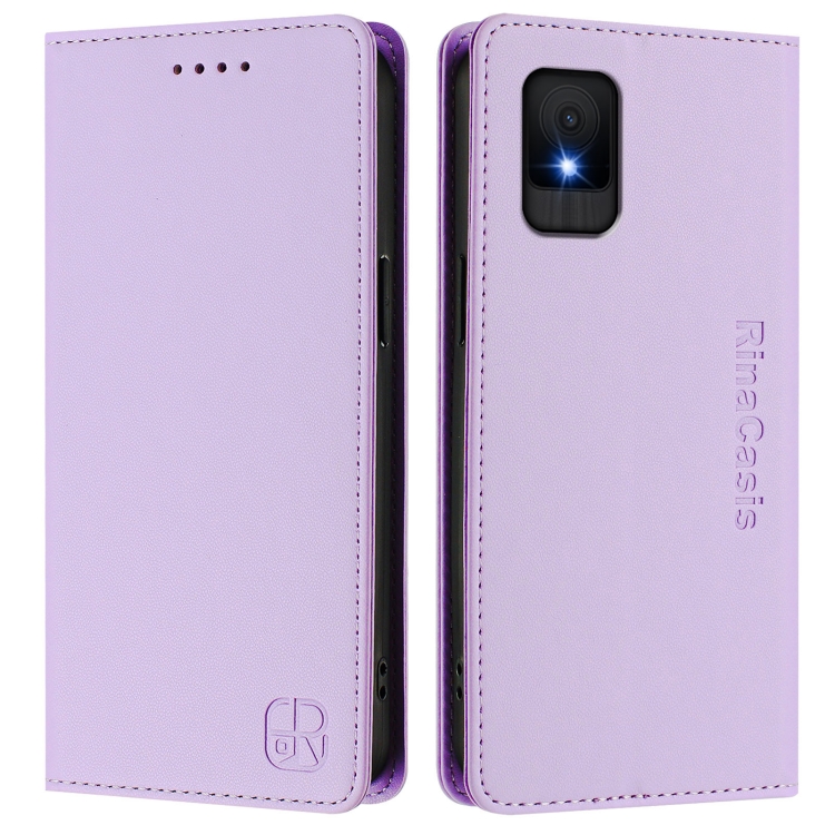 Funda de Cuero Rfid para TCL 502 Rc01 con Succión Magnética y Doble Pliegue (Morado Claro)