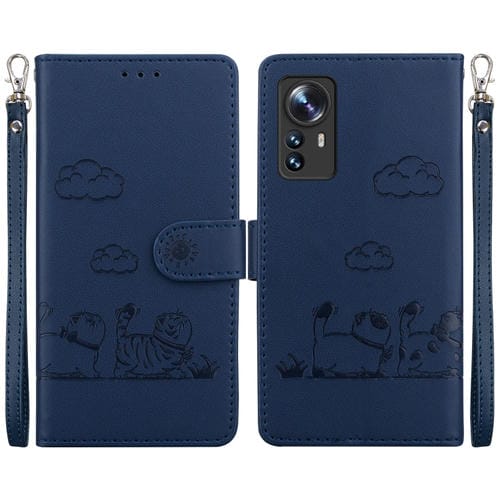 Funda de Cuero Rfid con Diseño de Gatos para Xiaomi 12/12X (Azul)