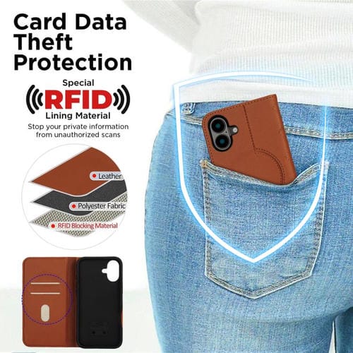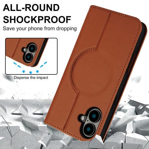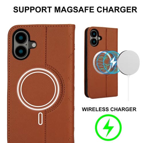 Funda de cuero Rhombic MagSafe RFID antirrobo para iPhone 17 (marrón)