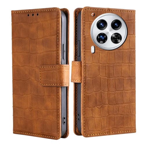 Funda de Piel para Tecno Camon 30 Premier 5G con Cierre Magnético y Diseño de Cocodrilo (Marrón)