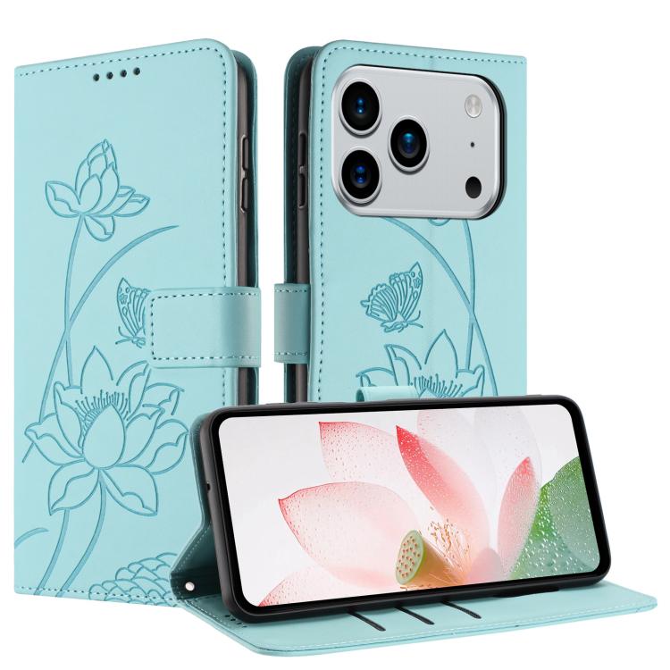 Funda de piel con relieve de loto y cordón para iPhone 17 Pro Max (verde)