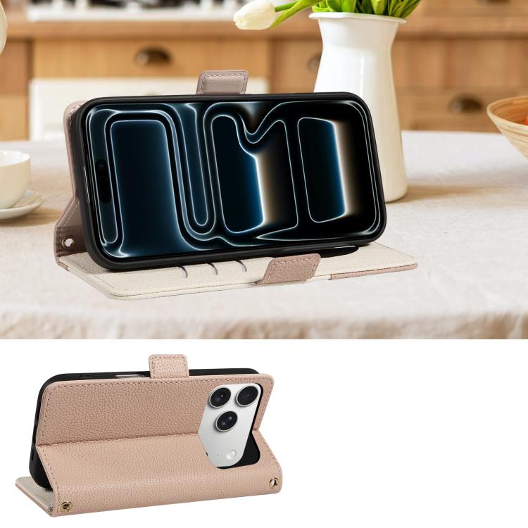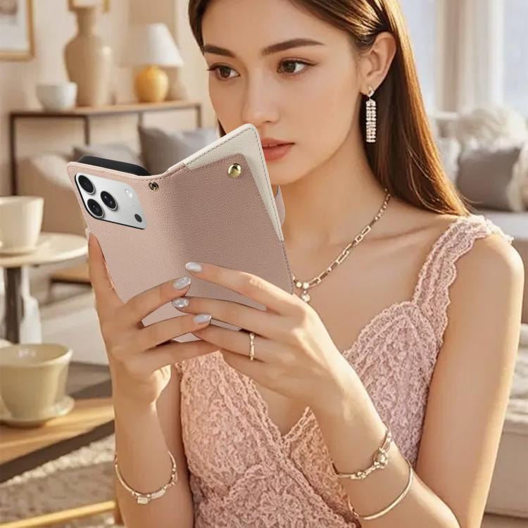 Funda de piel con textura de lichi y espejo para iPhone 17 Pro (rosa)