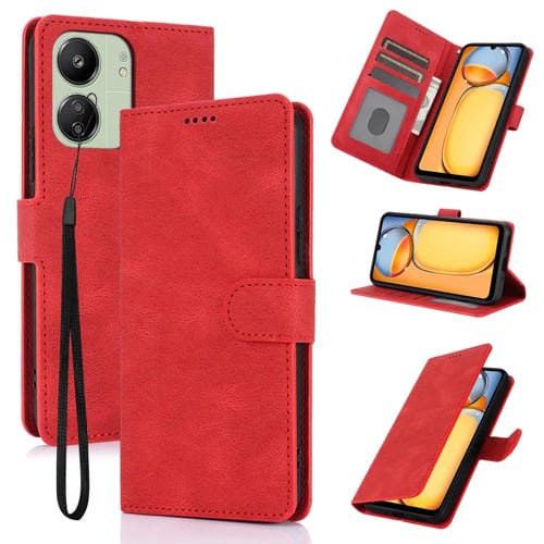 Funda de Piel de Becerro con Textura de Piel de Becerro y Tacto Fantástico para Redmi 13C 4G (Rojo)