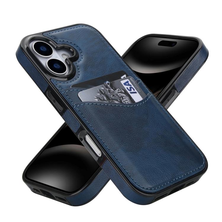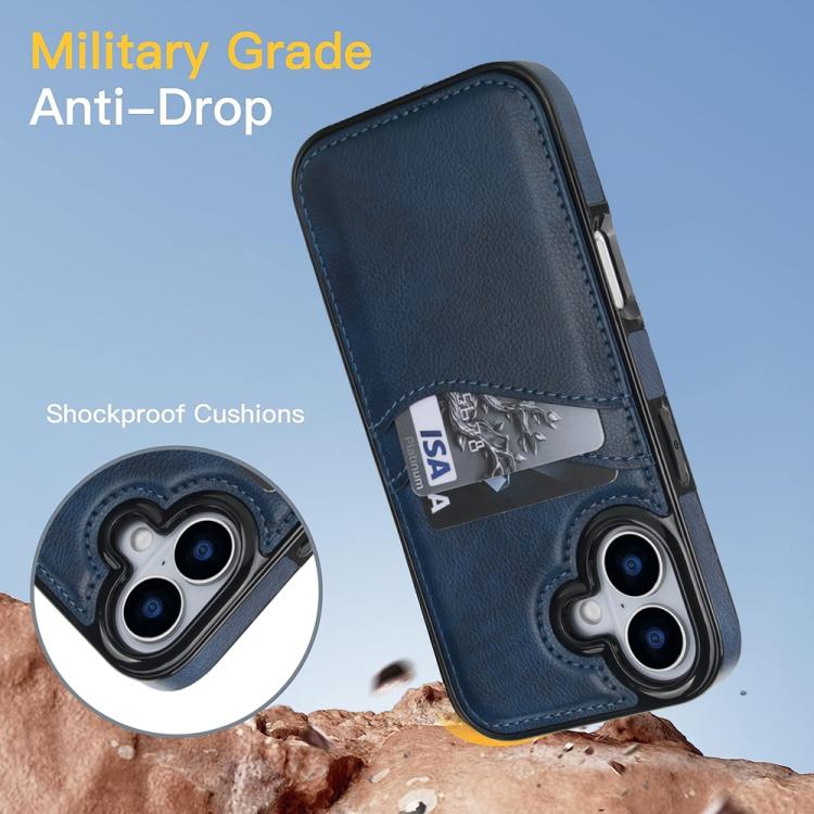 Funda de piel de lichi con ranuras para tarjetas para iPhone 17 (azul)